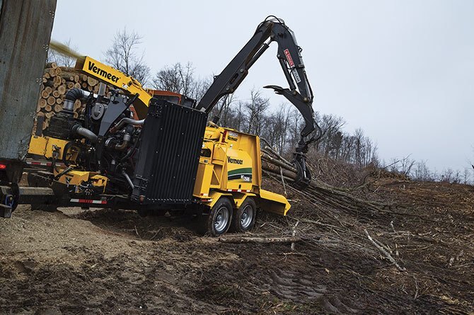 | Expand your revenue stream with more flexibility to produce valuable end- product from logs or slash with the WC2500XL whole tree chipper. Featuring a chip drum with an adjustable bite size that produces chips for pellets and biofuel chips, faster and easier knife setup and a PT Tech clutch, the WC2500XL whole tree chipper offers a powerful and effective solution for producing wood chips in a compact footprint. Material can be handled efficiently with variable-speed dual-infeed conveyor chains and SmartCrush technology. |