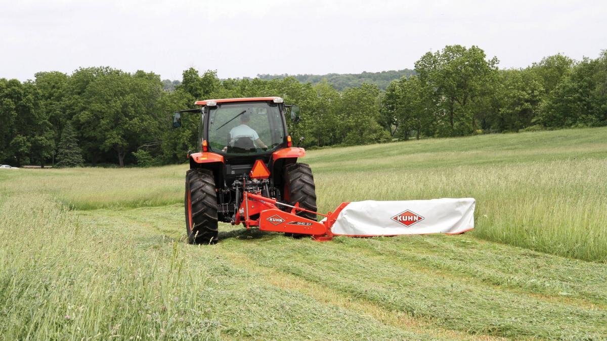 KUHN GMD Select Series disc mowers are an evolution of our economical machines for small and mid-sized farms. These simple, but durable, mowers offer fast, clean mowing of heavy grasses and delicate forage crops. They incorporate the proven 100 Series cutterbar that has decades of reliable service. As with all current KUHN mowers, Protectadrive® disc shear protection comes standard. A redesigned headstock keeps the mower close to the tractor, reducing overhang and increasing safety when mowing in rough fields. A standard outside swath wheel provides better definition between cut and uncut crop versus swath shields used on competitive machines. Multiple options allow the machine to be adapted to every customers’ particular needs. |