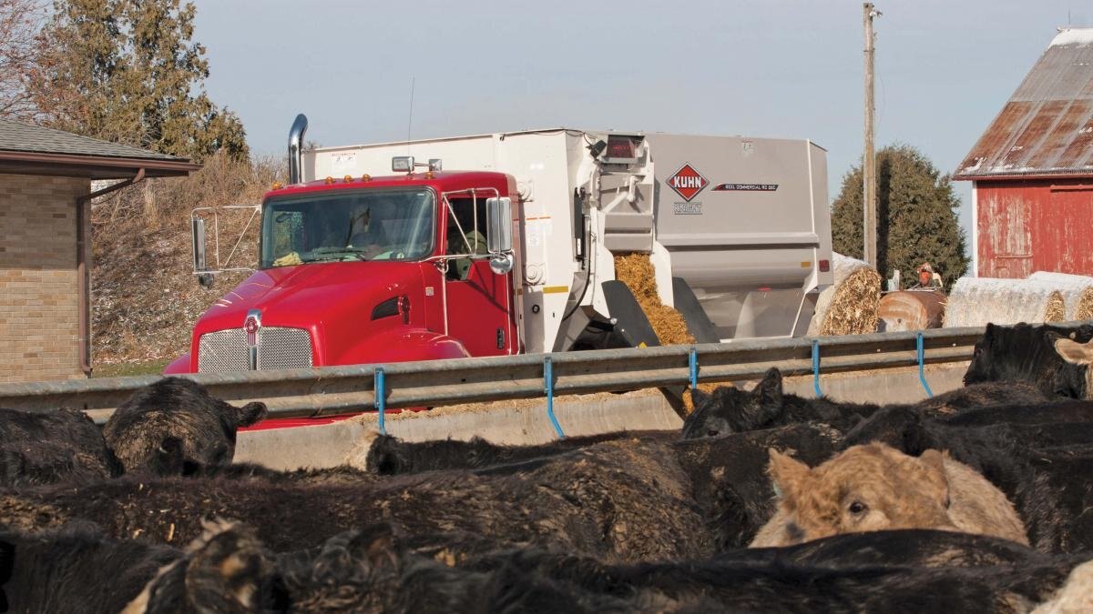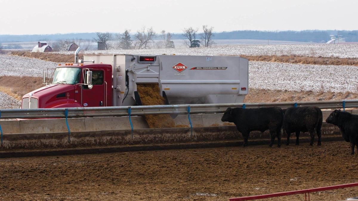KUHN Knight RC 200 Series Reel Commercial mixers provide superior durability and performance with innovative options that separate them from the competition. For dairy and beef producers mixing rations with high percentages of roughages or distillers grains, this design gives them the ability to efficiently handle a wide range of materials.