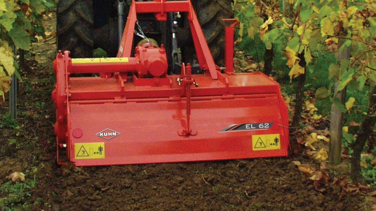 | KUHN EL 62, 82 and 92 Series power tillers are the result of a long history in soil preparation and decades of research and development. These tillers have been designed with versatility and durability for vineyard, market garden, horticulture and nursery operators. Their compact design allows you to till in vineyards and orchards, without damaging plants or trees. You are able to make simple adjustments from the comfort of your cab enabling fast adaptation to all situations. The EL 62, 82 and 92 power tillers are all highly reliable and are built to last to provide you with continued peace of mind. |