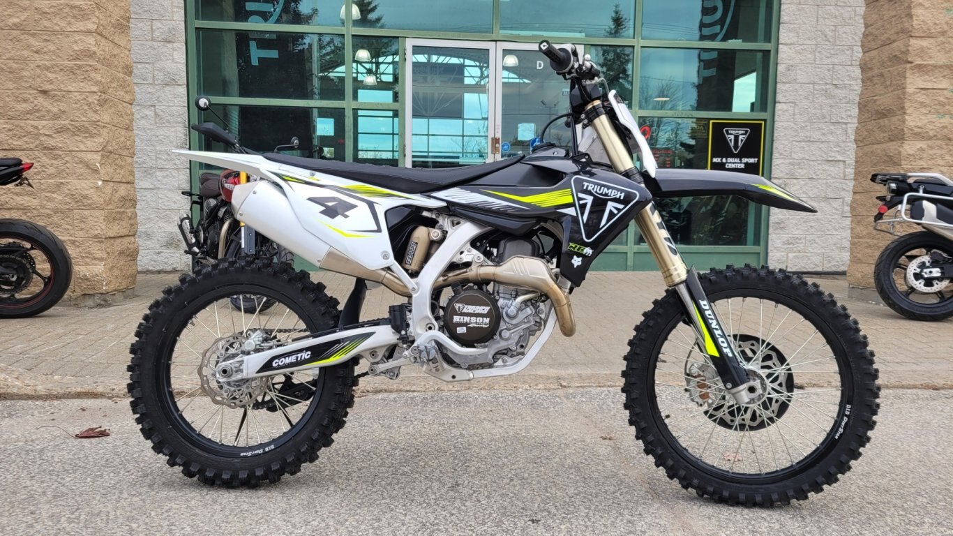 The All-New 2025 Triumph TF 450-RC Edition: introducing an all-new 450cc competition engine, and the strongest power-to-weight ratio in its class. Developed in close collaboration with motocross legend Ricky Carmichael, it features RC’s handpicked specs and signature components, built to deliver relentless performance and ultimate control.