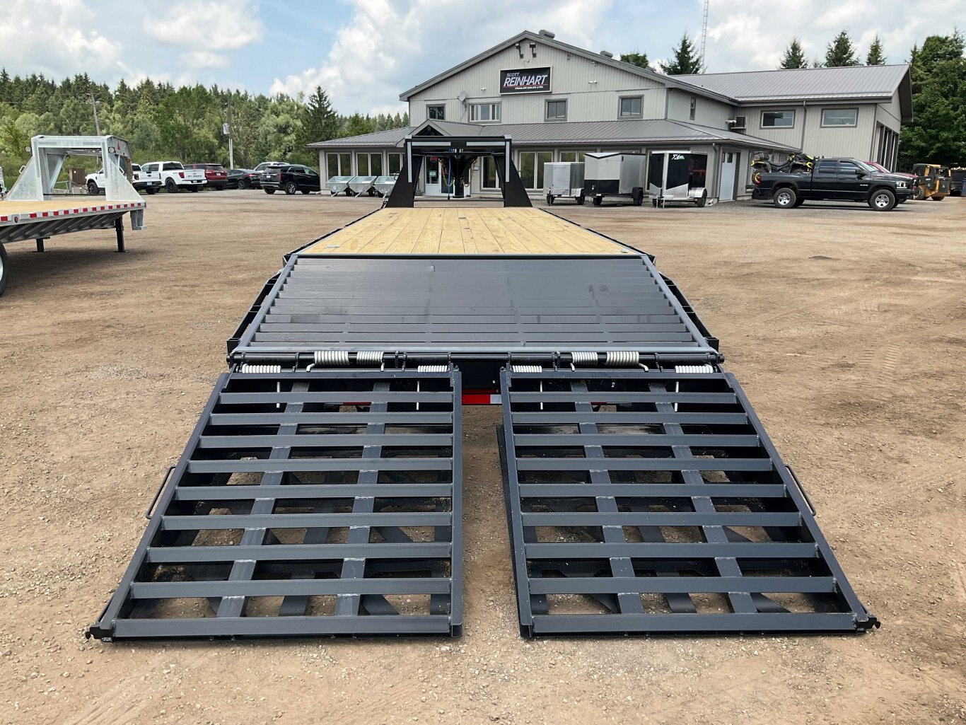 22,680LB GVWR, 3 7000LB Axles with Easy Lube Spindles, Slipper Spring Suspension, Electric Brakes on All Axles, 16 Inch Radial Tires, Galvanized Rims, Adjustable Gooseneck Coupler, 2 12,000LB Drop Leg Jacks, 5' Beavertail, 5' Spring Assisted Wedge Ramps, 16 Inch Crossmembers, Flex Resisting Bridge, 36 Inch Deck Height, Pressure Treated Wood Floor, 9' Gooseneck Length, Stake Pockets and Rub Rails, Side Steps on Both Sides, Drivers Side Winch Track, Lockable Aluminum Toolbox, Spare Tire Mount, Rubber Mount Sealed LED Lighting, Full Sealed Wire Harness, Black Powder Coat Painted with Scorpion Stone Guard