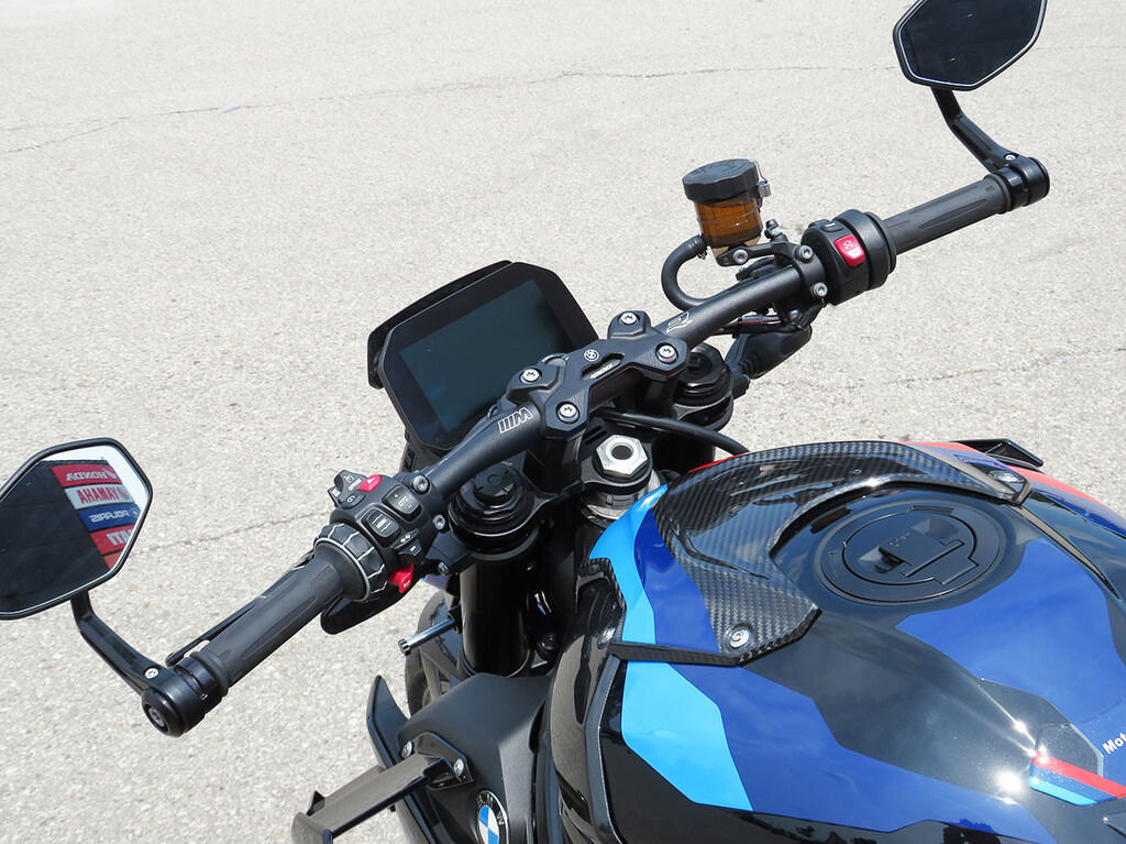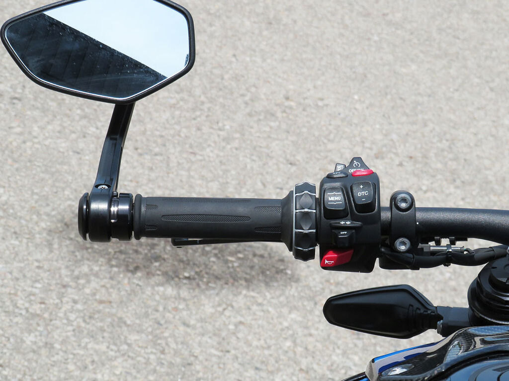Trigger a genuine desire to attack: the new handlebar end mirrors which you are familiar with as special accessories for the S 1000 R. On the M R, they provide the ultimate hyper roadster look as standard.