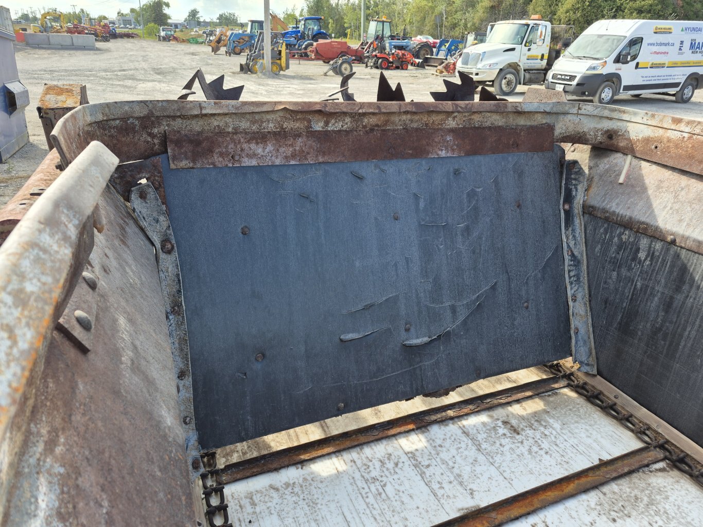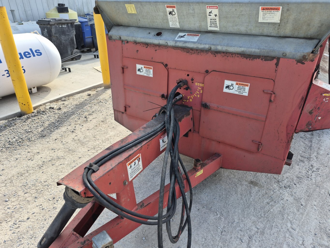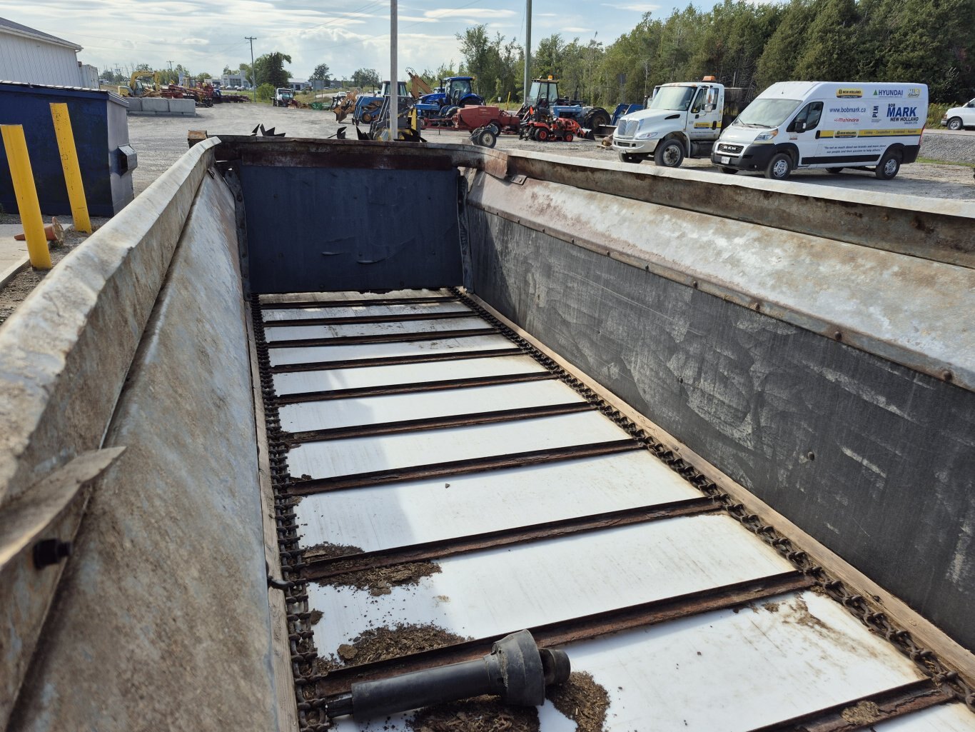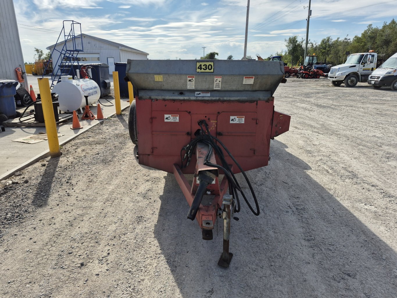 2005 H&S 430 manure spreader, 430 bushel or 386 cubic foot heaped capacity, 540 rpm PTO, Tandem axle with 16.5x16.1 flotation tires, Hydraulic endgate, Upper beater, Front splash guards & side shields, T-Rod apron chain, Hydraulic drive apron, Poly floor & endgate, Sides are poly covered plywood, Always stored inside