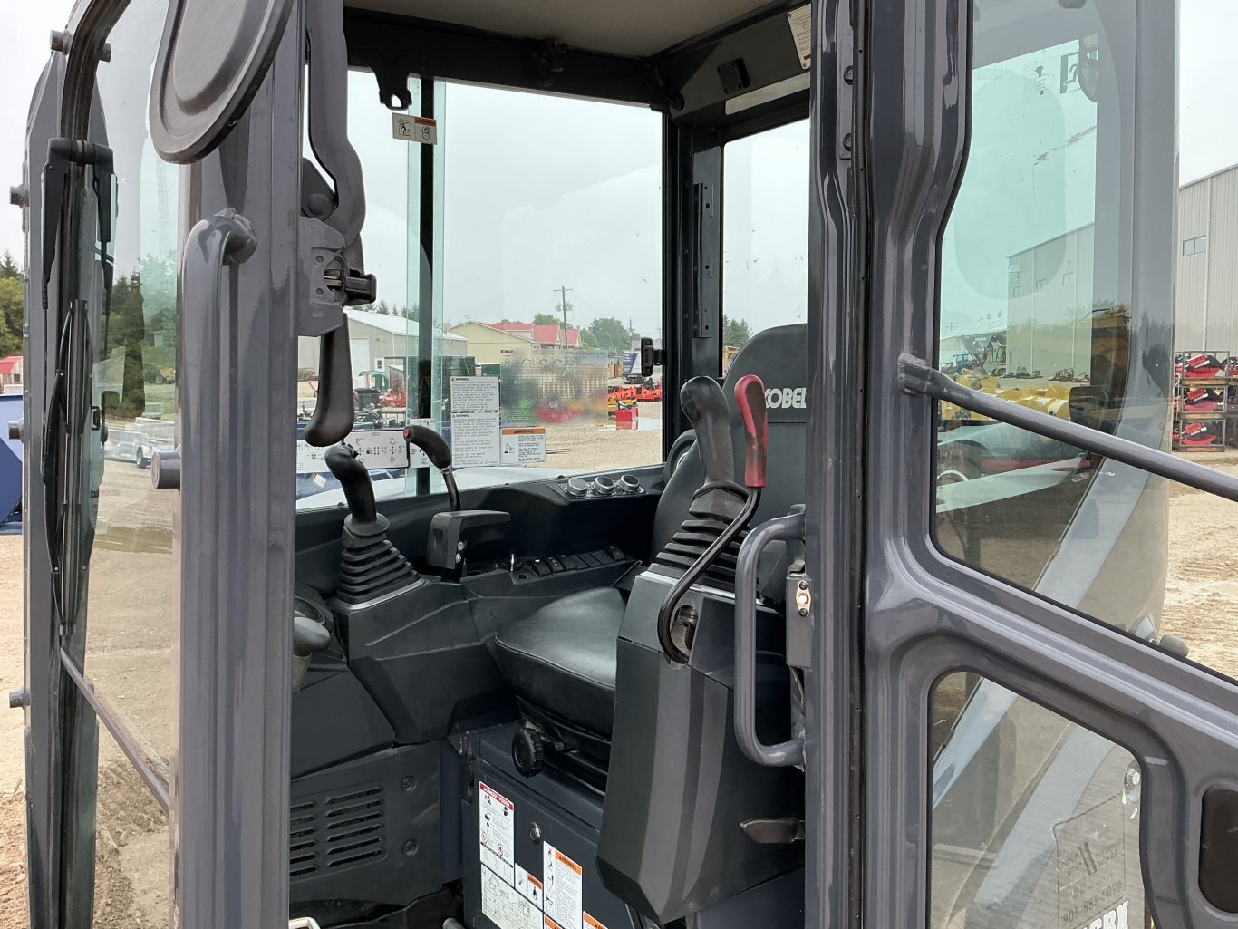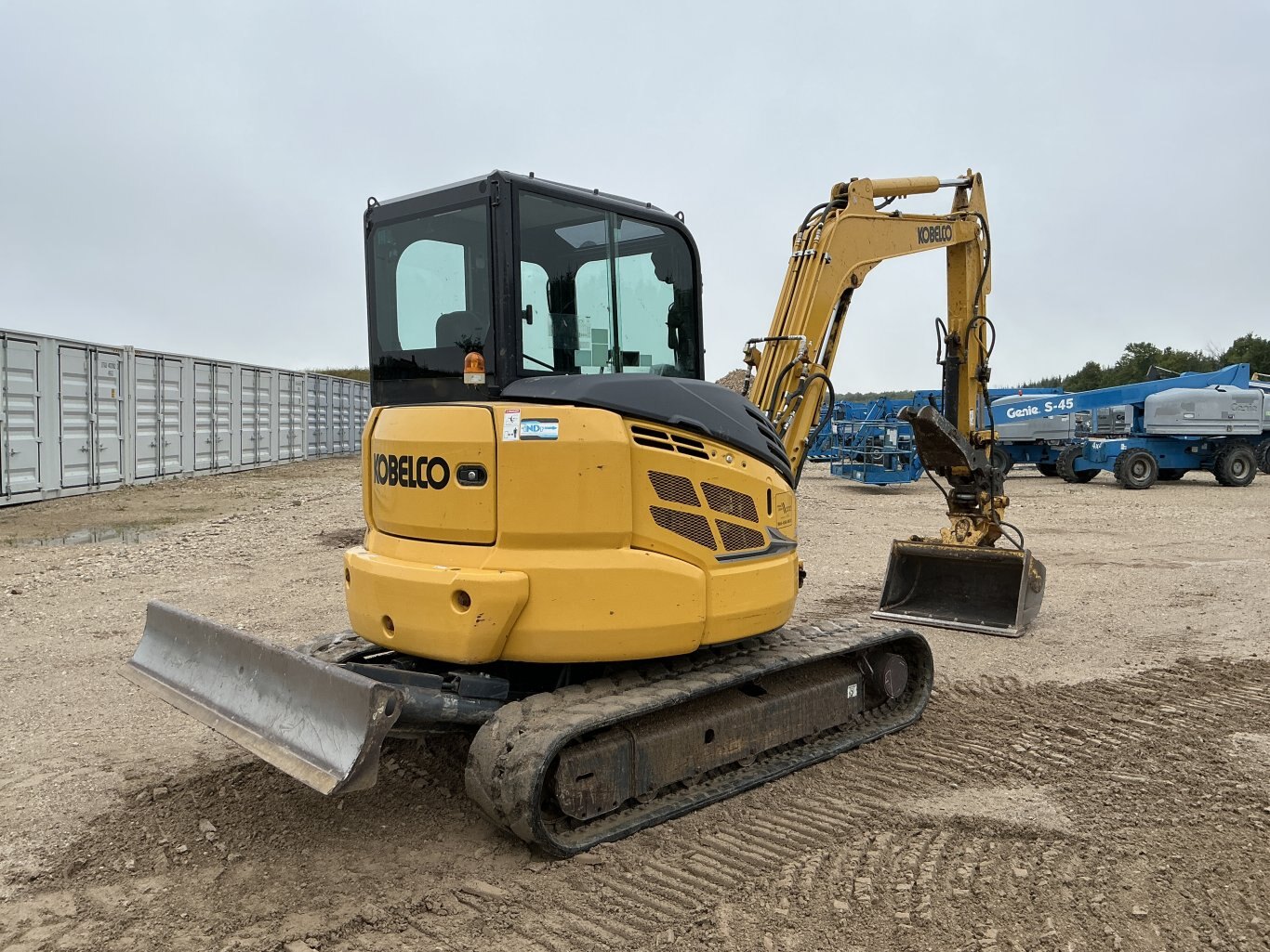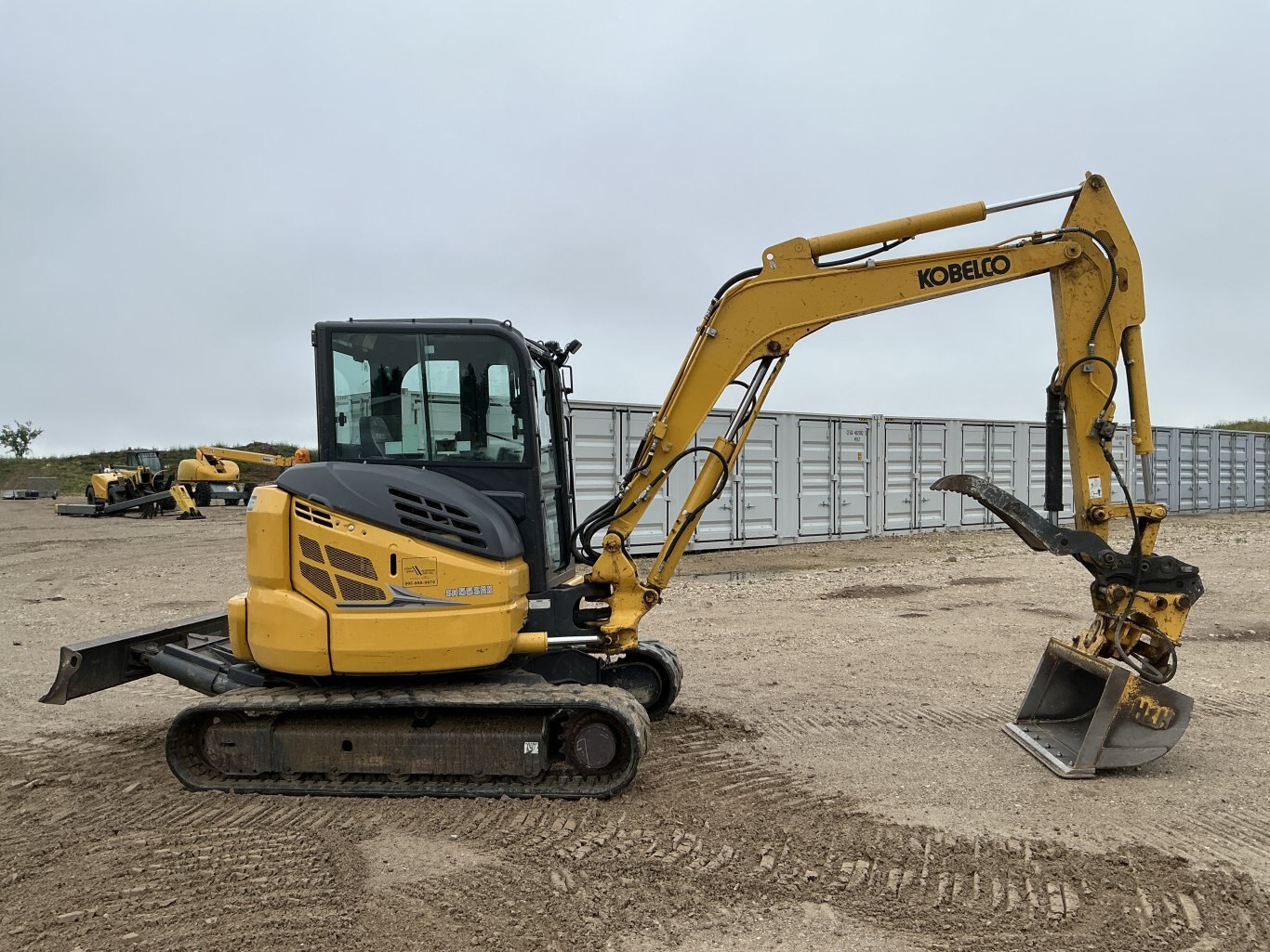 2022 KOBELCO SK55SRX MINI EXCAVATOR. 37HP YANMAR DIESEL ENGINE. SHORT RADIUS TAIL SWING. ENCLOSED CAB. MACHINE HOURS 2276.9.