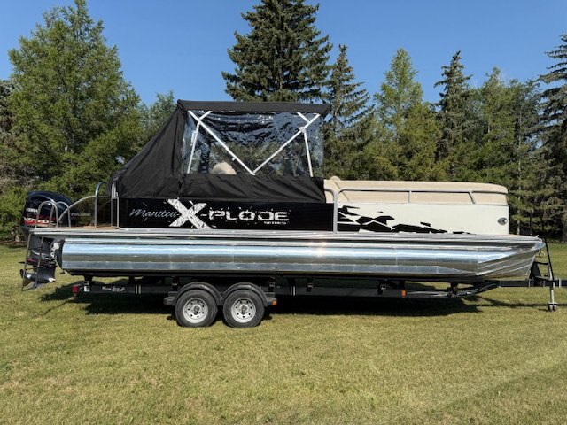 Fun, fast, and incredibly exciting! The Manitou X-plode combines relentless performance and refined comfort to deliver a one-of-a-kind experience. One that screams speed boat as much as it does pontoon. Distinctive color options and an aggressive V-Toon® stance make the X-plode a stand-out performer on the water, and an absolute blast to own and drive.