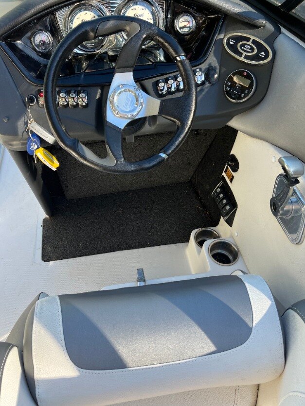 The spacious, well-maintained interior comfortably seats family and friends, with plenty of storage for all your gear. A premium sound system keeps the tunes going while you enjoy the water, and the boat’s design ensures thrilling wakes and waves for wakeboarding or wakesurfing.