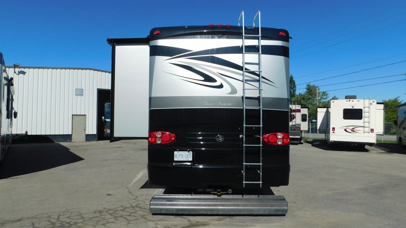 This 2011 Fleetwood Pace Arrow 38P is very clean with a great layout. It has 3 slides and is equipped with the following options: ***THIS IS A CONSIGNMENT SALE*** -CHASSIS: Chevy -ENGINE: Vortec 8.1 ltr V8 -TRANSMISSION: Allison -FUEL CAPACITY:(gal) 75 -HITCH RATING:(lbs) 6,000 -PROPANE TANK:(gal) 25 -GENERATOR: 5.5 kW Onan Quiet -Auto Generator Start System - Length - 38.67 ft. - Width - 8.5 ft. - Height - 12.83 ft. - 20 ft. Power Retractable Awning - Front and Rear Power Levelling Jacks - Roof Ladder - Front and Side Back up Cameras - Plenty of Basement Storage - BTU A/C - 20,000/30,000 Dual BTU Furnace - Two Convertible Sofas - Convertible Dinette - Centre Kitchen - 2 Burner Stove w/ Oven - Full-size Dual Refrigerator - Microwave Oven - Bright Shower w/ Skylight - Porcelain Toilet - Queen Size Bed in Master - Two Large Closets in Master - Sleeps 8 - etc. -COME BY AND SEE IT TODAY!