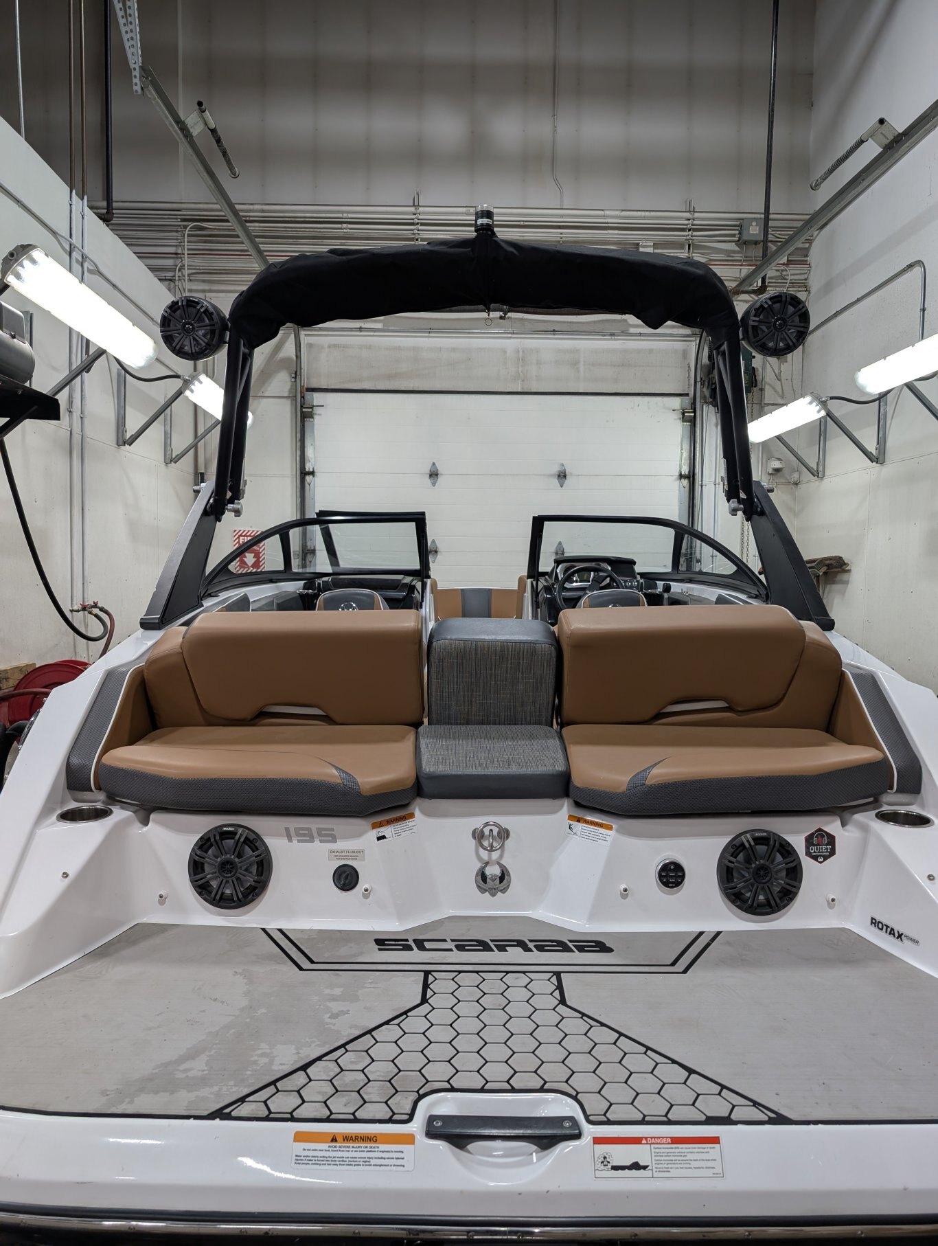 Bred to break industry standards on fun, the Scarab 195 was born to quench a thirst for adrenaline. She's swift and agile, flaunts every curve, and follows through on her promise for wicked wakes and legendary fun. Suit up; a setup this beautiful will make you wish for more hours in the day. LOA / 18' 10" Persons Capacity / 8 people Fuel Capacity / 31 gal |