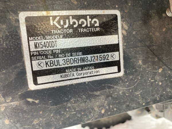 Externalspecs: Used 2021 Kubota MX5400DTRC 4wd 54hp tractor with 8x8\ntransmission, nokian tires, one remote and loader with\n72\" skid steer bucket
