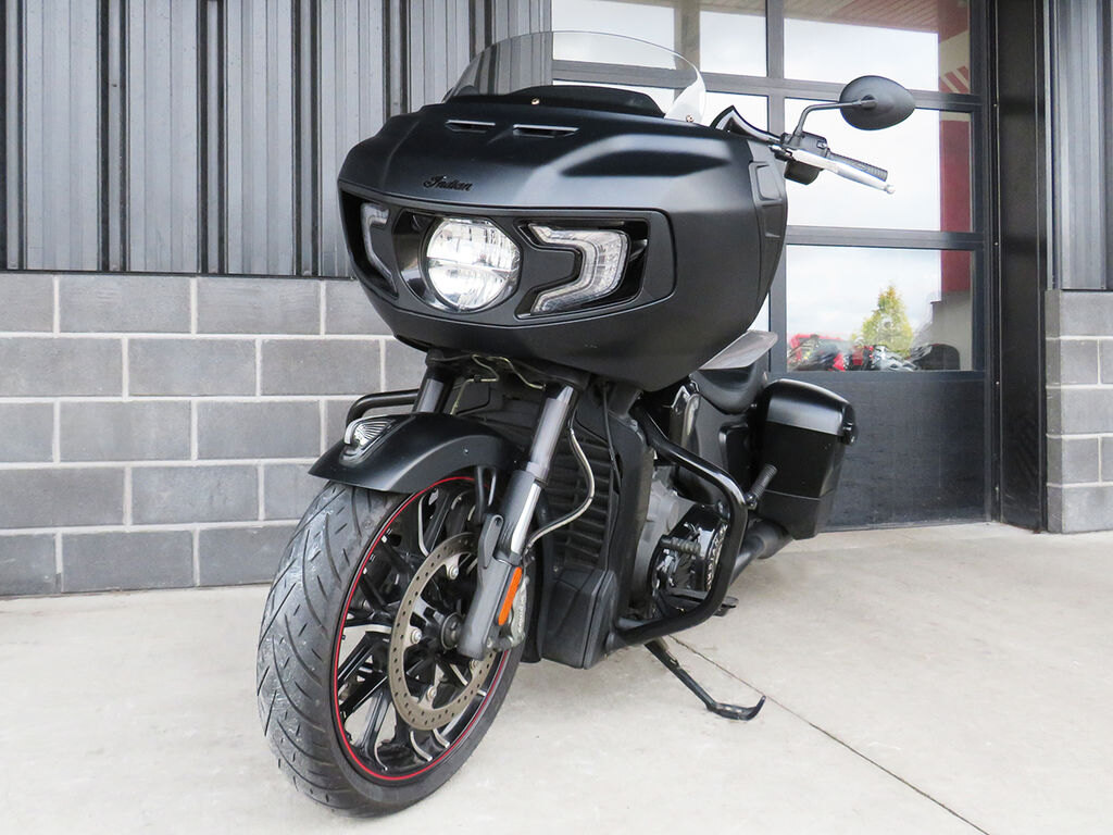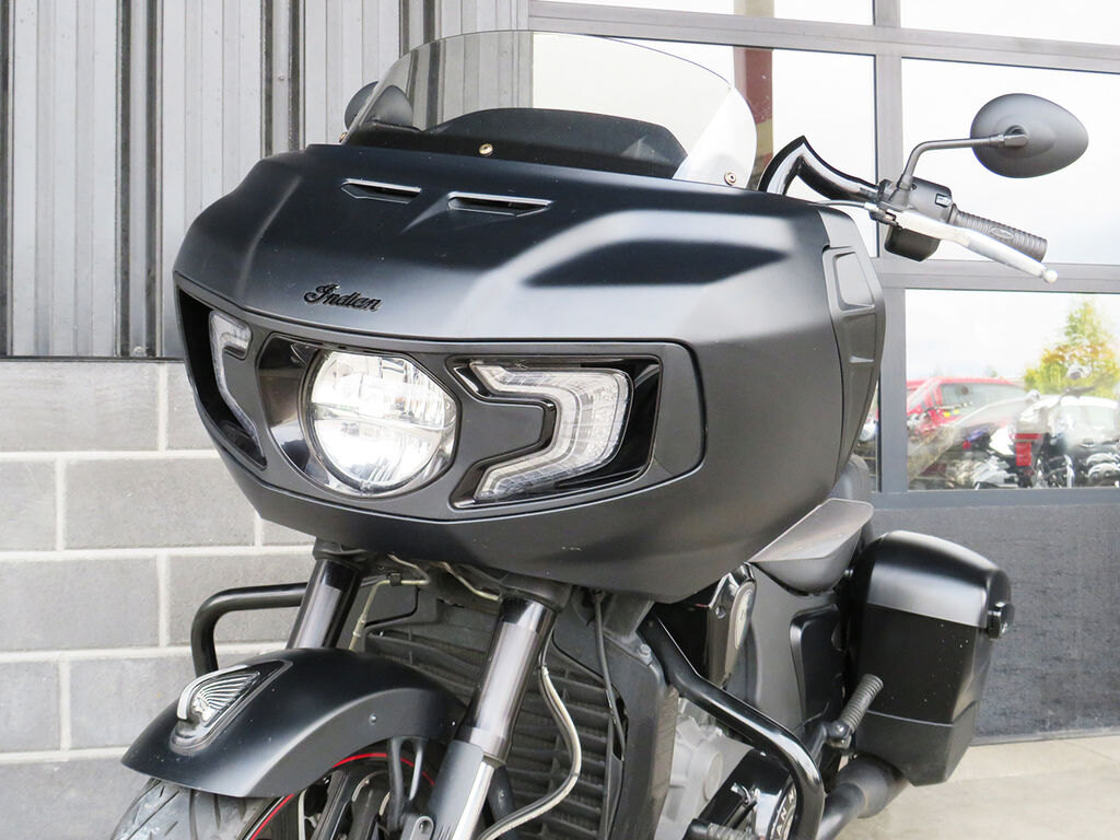 BLACK ON BLACK ON BLACKThe Indian Challenger Dark Horse has unbridled power and a style that never bows down. Premium features, and an aggressive, blacked-out silhouette, ensure heads turn wherever it roams.
