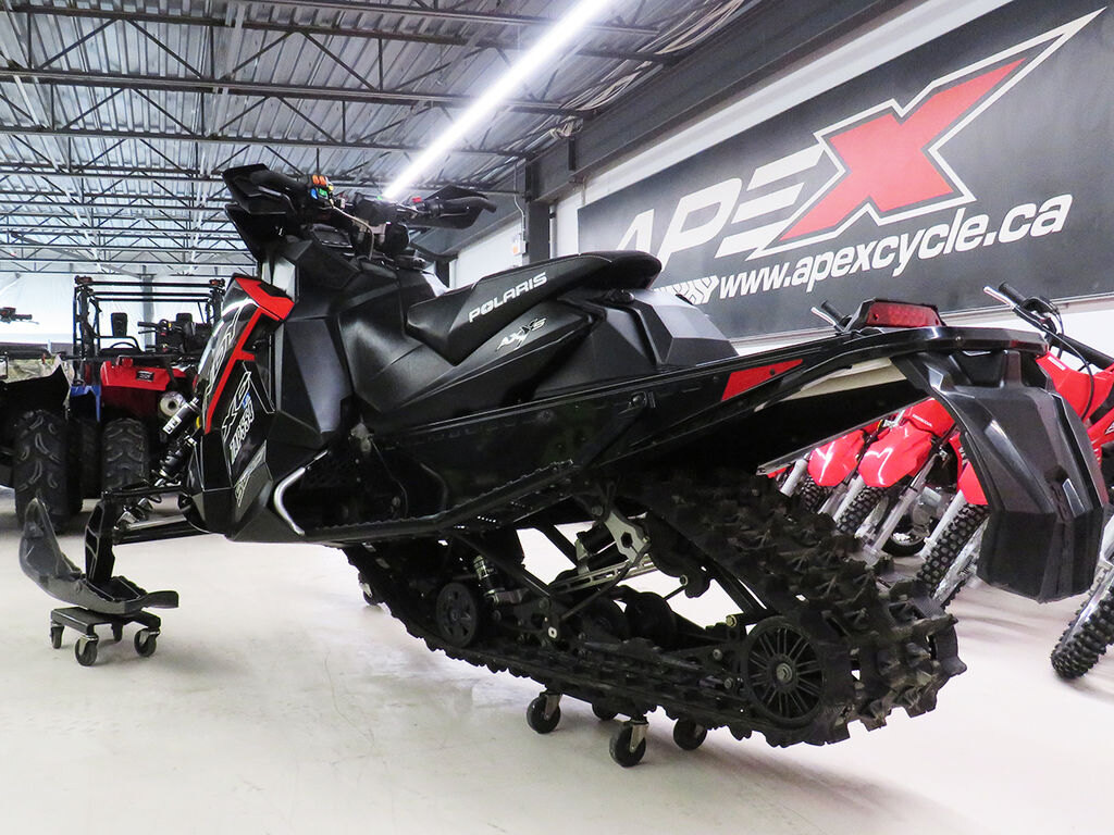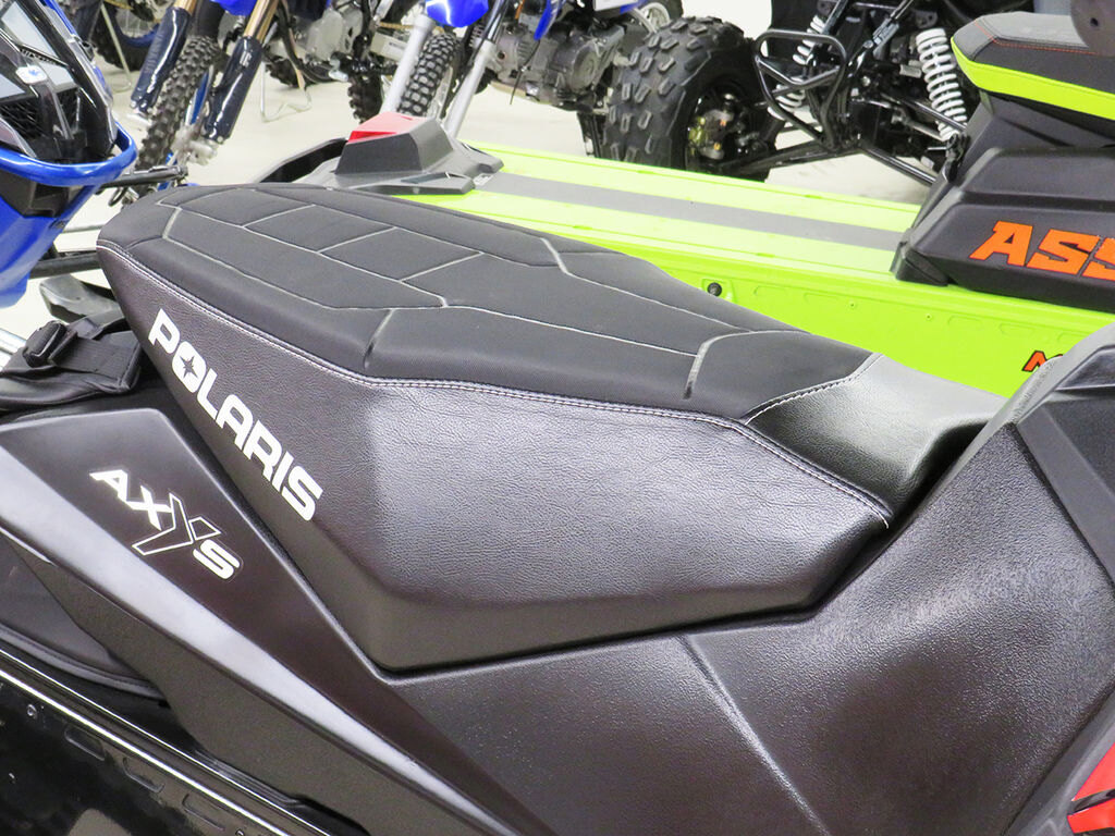 The AXYS chassis design is the key to delivering rider balanced control through the right rider positioning and centralized vehicle mass. The rider\'s hand position is moved 4.5\" forward, the feet position is 2\" forward, the knee position is 4.5\" forward, and the seat is 4.5\" forward. This means more bite for flatter cornering when in the neutral riding position and a lighter front end for climbing on top of the snow or the moguls when the rider shifts to the back of the sled.