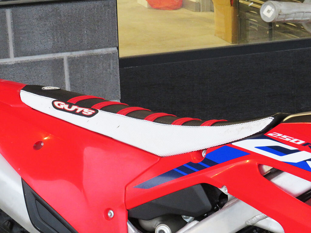 The CRF250Rs flat seat/tank junction makes it easier to move forward and backward on the bike, increasing your control.