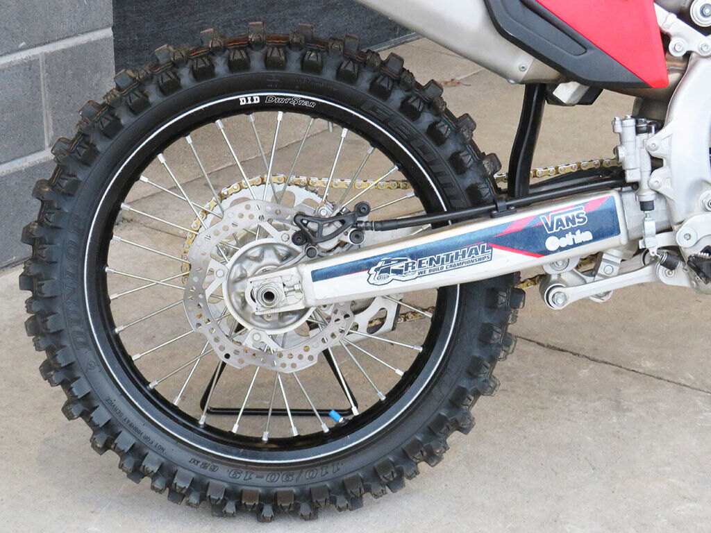 Developed using the latest Dunlop block-on-block design technology, the CRF250Rs MX3S tires give excellent feedback and are a perfect complement to the bikes improved frame and suspension.