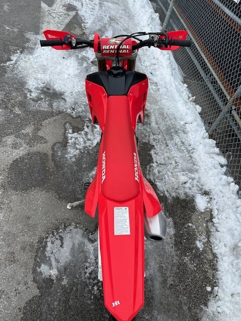 The Honda CRF250RX gives you serious motocross performance in a bike that’s specially tailored to cross country, and demanding trails. Thanks to different gearbox ratios, an 18-inch rear wheel, special engine settings, handguards, a sidestand, and a larger fuel tank, the CRF250RX is a winning formula.