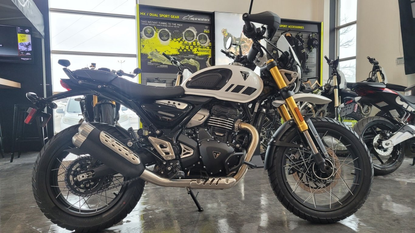 Rugged Scrambler AttitudeAssertive silhouette and authentic Triumph Scrambler design DNA. Adventure ReadySide laced spoked wheels with larger 19-inch front, ready for off-road exploration. TR Series EngineClass leading power and performance. Built ToughBuilt tough and fully protected. |